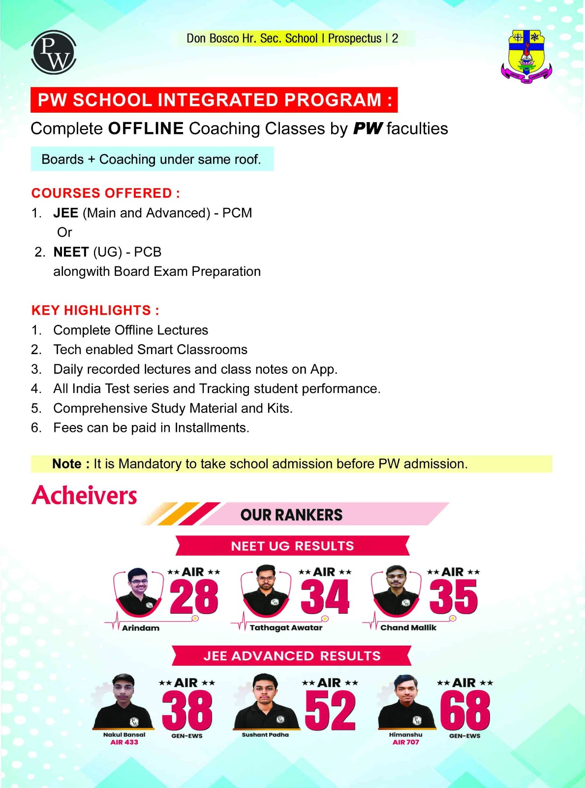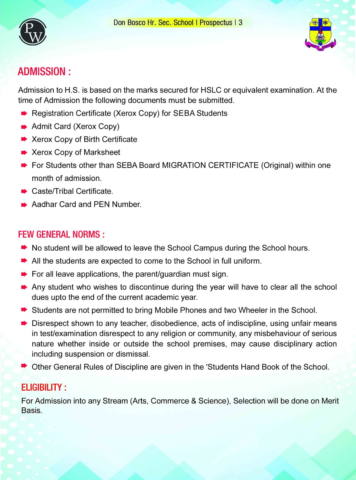 The aim of this institution is to impart sound education by cultivating in the pupils habits of piety, virtue and discipline. Education in Don Bosco School is based on the preventive system. The three areas of the preventive system are Reason, Religion and Loving Kindness. Reason aims at convincing the youth the need to follow ‘truth and good’ in accordance with their intellectual development, need and situation. Religion aims at instilling in the pupils believe in God and respect for what is godly. Loving kindness is synonymous with ‘charity’ or ‘love’. It is ‘love’ that is expressed in words, deeds and even in looks and demeanor. Basically, the preventive system tries to avoid every occasion of evil by proper supervision and convinces the children need to do good and avoid evil through friendly persuasion.